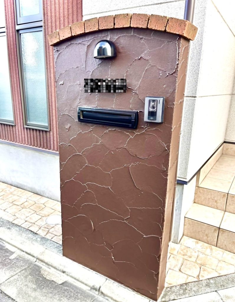 漆喰塗の塀をブラウンで塗装させていただきました。