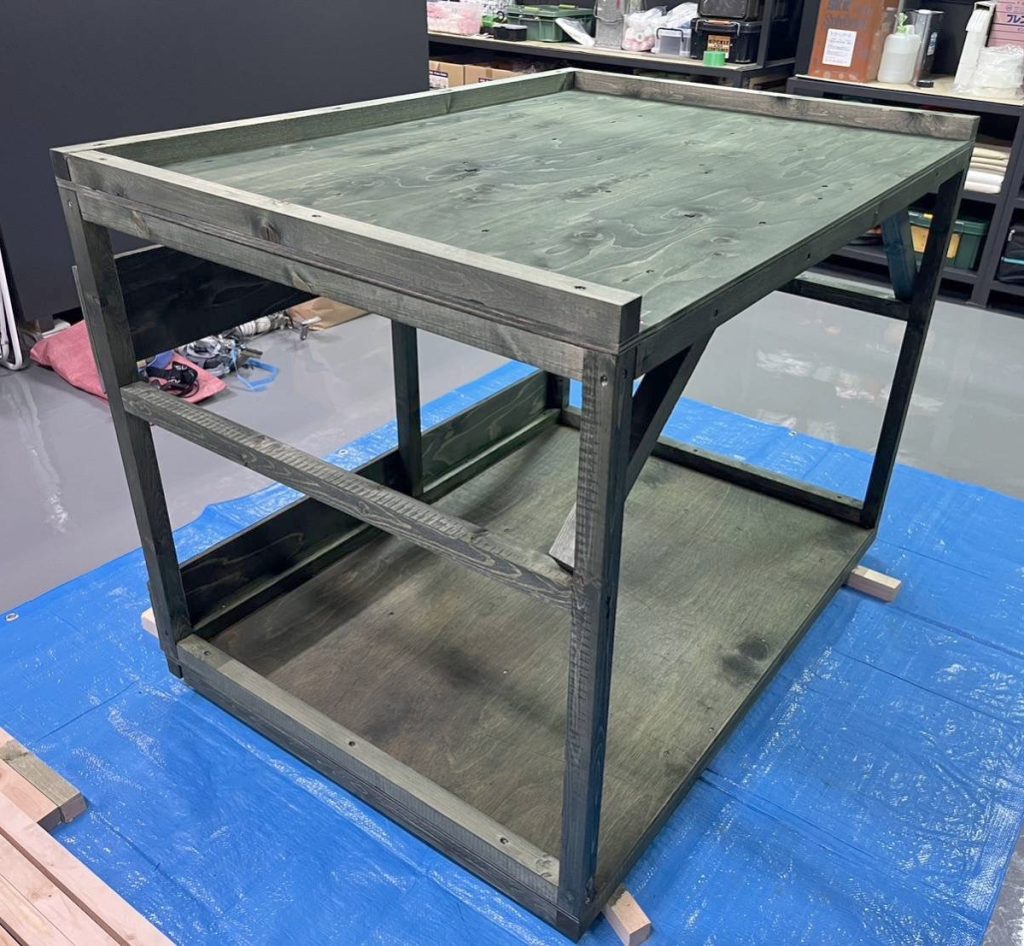 木の下地からペーパーをかけていき、丁寧に下塗り材を塗布。上塗り材のクリアを繰り返し、繰り返し、重ねて仕上げました。